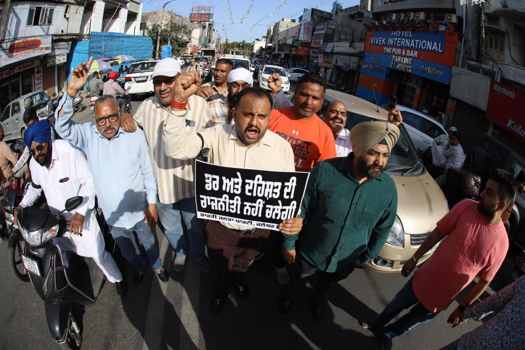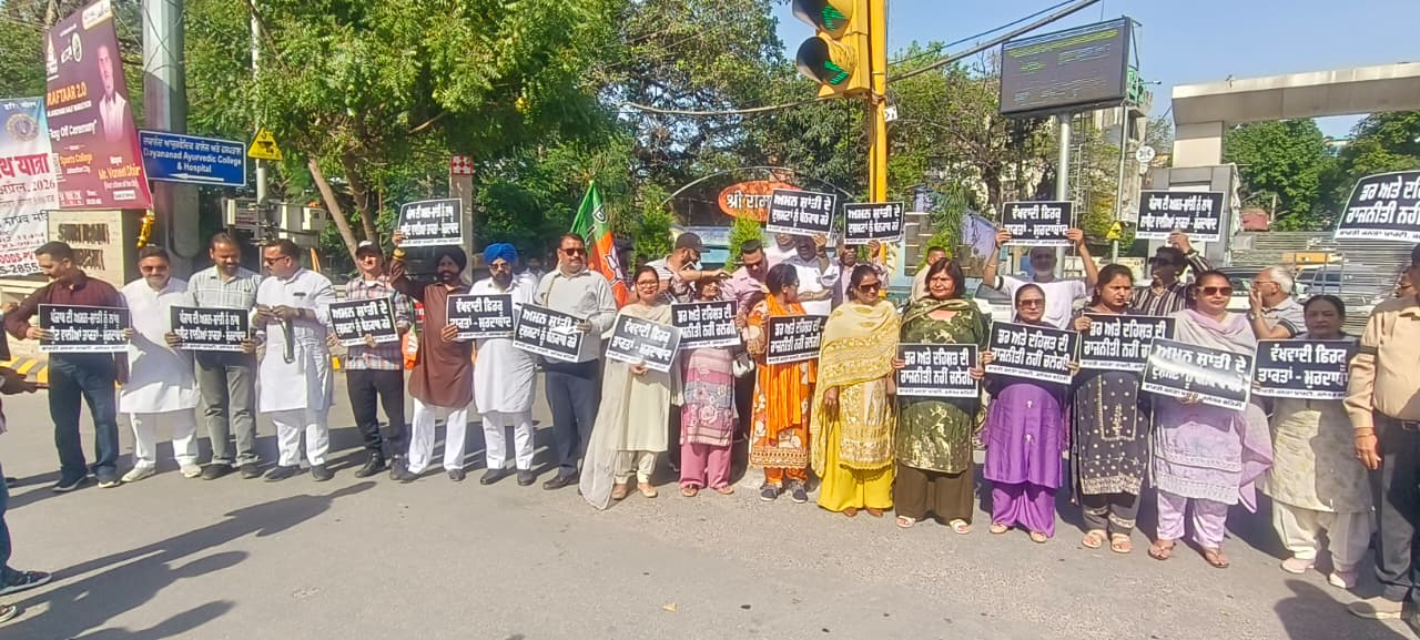जालंधर। आज भारतीय जनता पार्टी जालंधर शहरी द्वारा श्री राम चौक कंपनी बाग से लेकर भगवान वाल्मीकि चौक ज्योति चौक तक पंजाब सरकार के विरुद्ध एक विशाल रोष मार्च सैंकड़ों भाजपा कार्यकर्ताओं ने एकत्रित द्वारा निकाला गया।जिसमें भगवंत मान के नेतृत्व वाली फेल साबित हुई पंजाब सरकार की कार्य प्रणाली पर जमकर कार्यकर्ताओं द्वारा रोष प्रदर्शन किया गया जोकि कल 1 अप्रैल, 2026 को भारतीय जानता पार्टी के प्रदेश कार्यालय सेक्टर 37 चंडीगढ़ में लगभग शाम 5 बजे ग्रेनेड का ब्लास्ट हुआ।