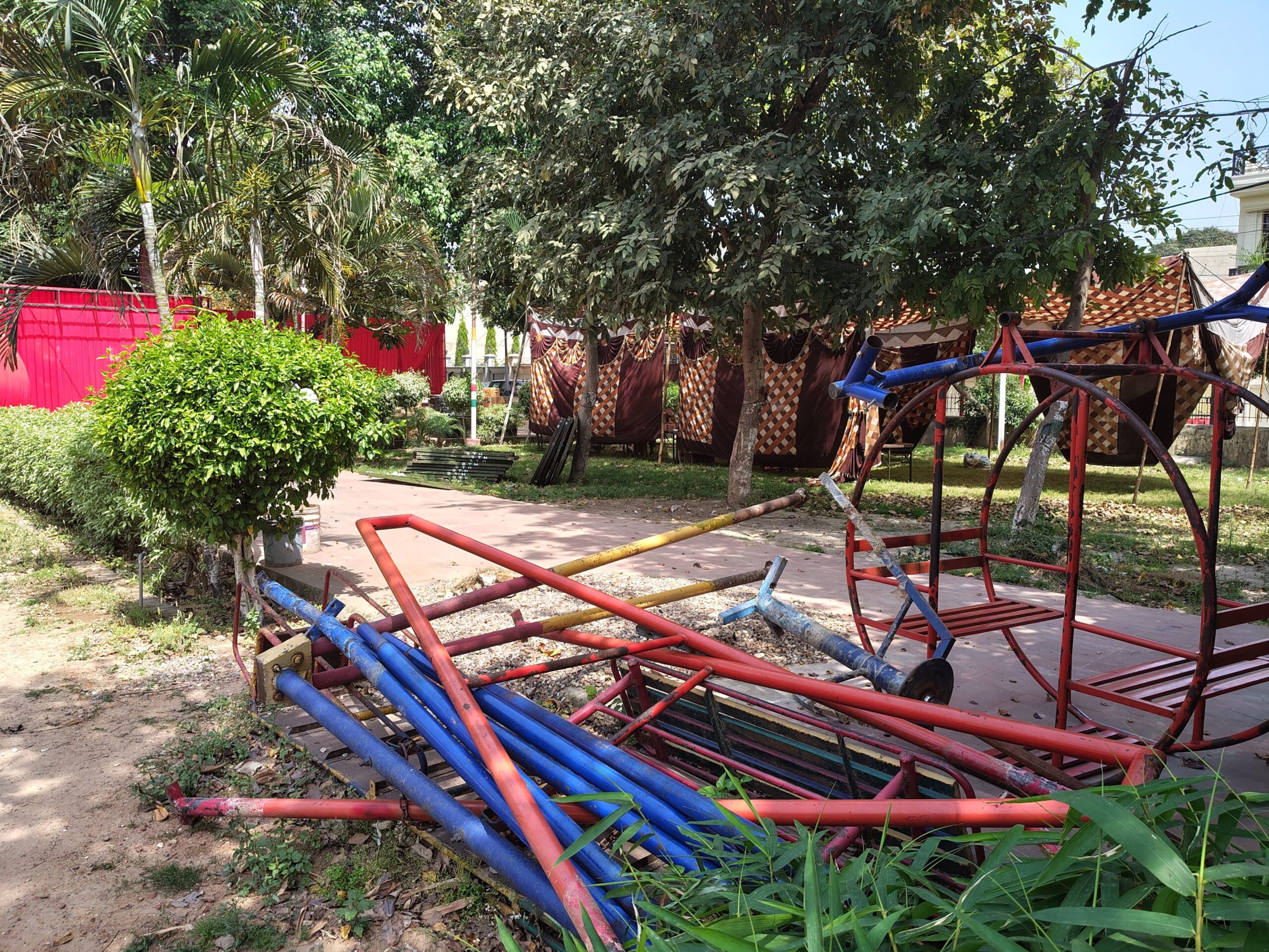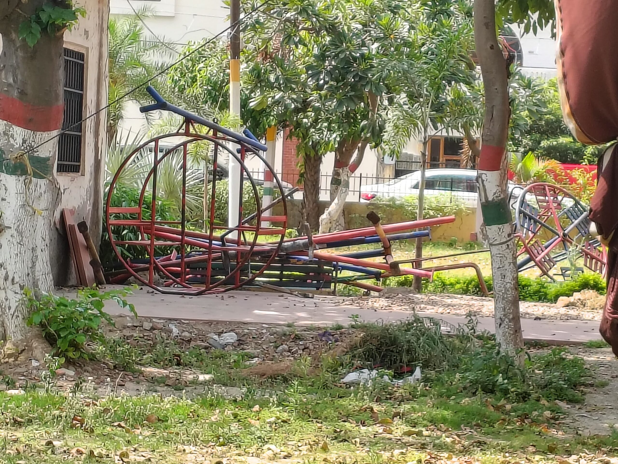 पार्षद का तर्क- रिपेयर करवाने थे झूले इसलिए उताकर साइड पर रखे, सोसायटी ही ठीक करवाएगी