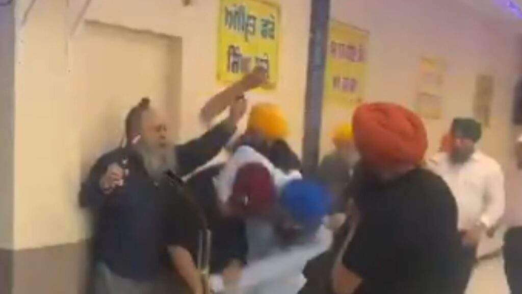 गुरुद्वारे के अंदर शुरुआत में मुख्य हॉल में भारी भीड़ और शोर-शराबा दिखाई-सुनाई देता है। संगत के बीच अचानक बहस शुरू होती है, जो देखते ही देखते हिंसक झड़प में बदल जाती है। लोग एक-दूसरे को धक्का देते हैं और चिल्लाते नजर आते हैं। झड़प इतनी खतरनाक थी कि कई लोगों की पगड़ियां उतर गईं और फर्श पर बिखरी दिखाई दीं।