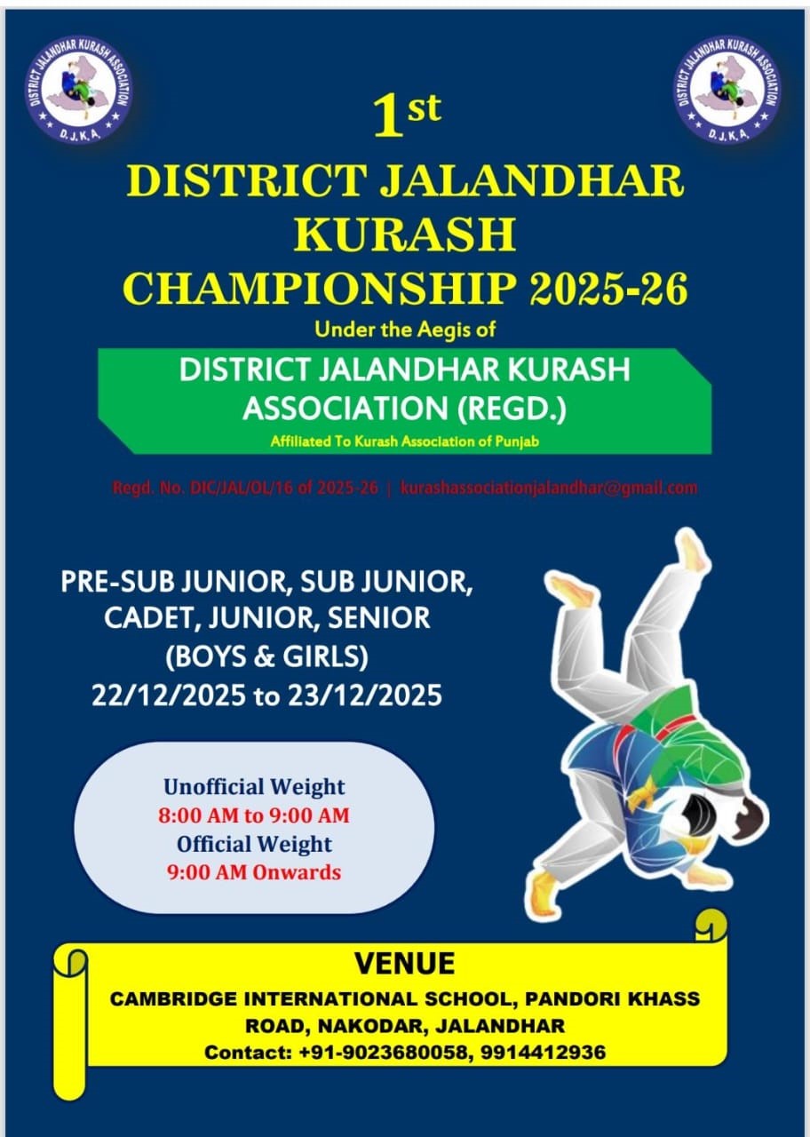जालंधर। जूडो और कुश्ती से जुड़े खेल प्रेमियों के लिए एक अच्छी खबर है। उज्बेकिस्तान की एक प्राचीन लोक कुश्ती शैली को कुराश को लेकर पहली जिला स्तरीय कुराश चैंपियनशिप करवाई जा रही है। इस दो दिवसीय कुराश चैंपियनशिप का आयोजन 22 और 23 दिसंबर नकोदर स्थित कैम्ब्रिज इंटरनेशनल स्कूल में किया जा रहा है। यह चैंपियनशिप जिला जालंधर कुराश एसोसिएशन की तरफ से करवाई जा रही है। इसकी जानकारी कैंब्रिज इंटरनेशनल स्कूल नकोदर के मैनेजिंग डायरेक्टर व कुराश एसोसिएशन के प्रधान रिपु जीत आंगरा और महासचिव अवनी कुमार शर्मा ने संयुक्त रूप से दी।